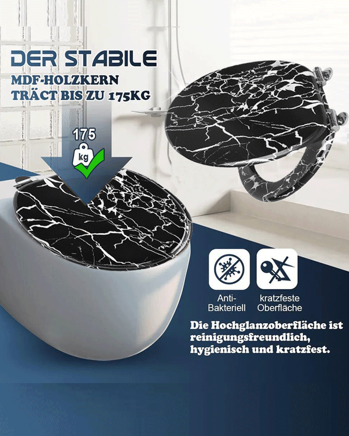 SINOBATH (S05)MDF-Holzkern, WC-Sitz Toilettensitz mit Absenkautomatik, Softclose-Scharnier(Seestern)