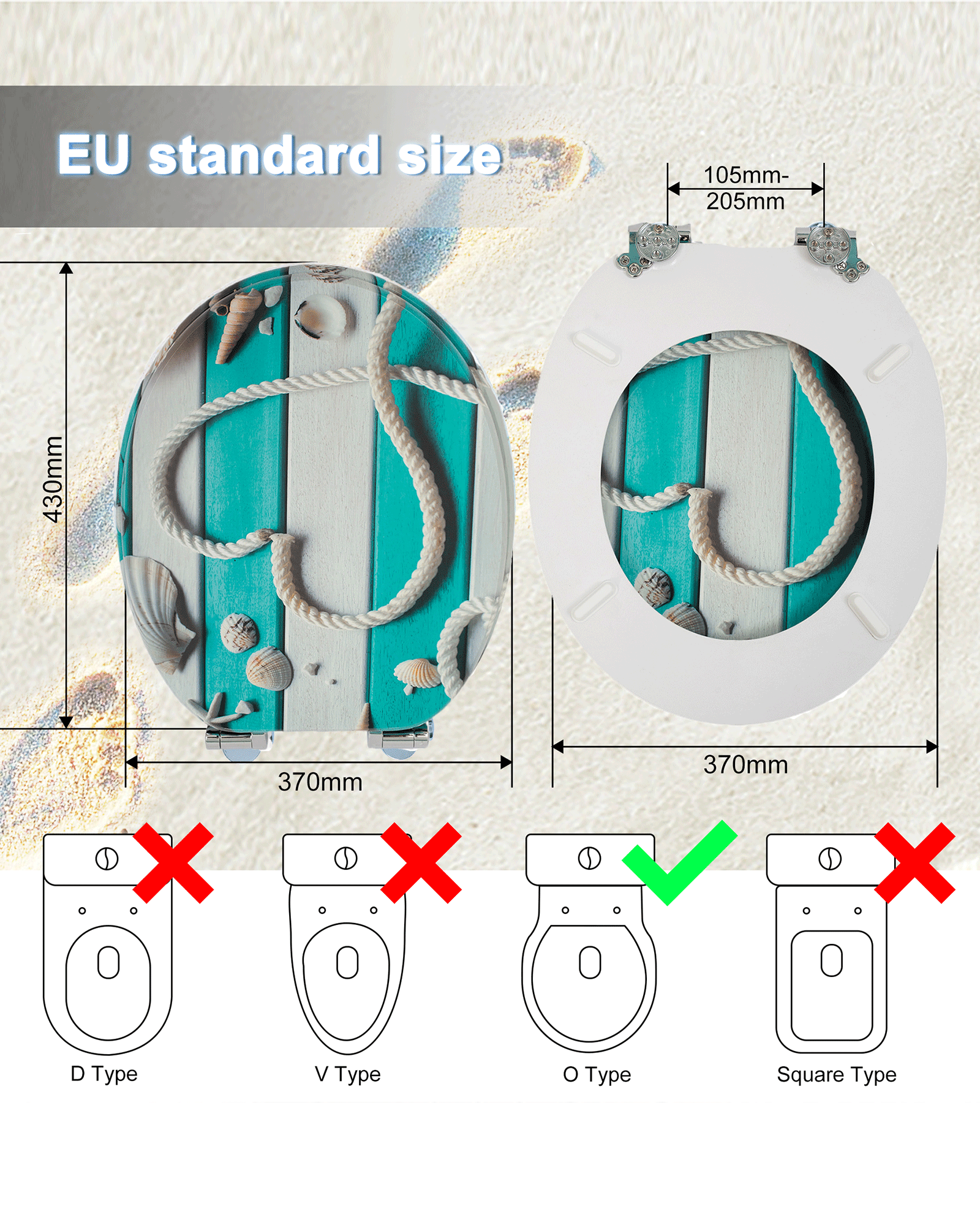 Ein gutes Toilettenerlebnis kann uns helfen, uns im Leben besser zu fühlen. Die Benutzung von Toiletten bringt viel Bequemlichkeit und Komfort in unser Toilettenleben. Aber es gibt auch viele Probleme, wie zum Beispiel: Toilettendeckel sind leicht mit Bakterien behaftet, die unsere Gesundheit ernsthaft beeinträchtigen. Aus Umweltschutz- und Gesundheitsgründen sollten wir unsere Toiletten häufig austauschen. Die Kosten für den Austausch von Toiletten sind jedoch relativ hoch und die Verfahren sind komplizierter. Dies hat vielen Familien große Probleme bereitet. SINOBATH geht von den Bedürfnissen jedes Kunden aus. Seit mehr als zehn Jahren engagieren wir uns für die Forschung und Entwicklung sowie die Produktion von Toilettendeckeln. Lassen Sie unsere Kunden die Probleme der Bakterienvermehrung auf Toilettendeckeln rechtzeitig lösen, ohne die Toilette austauschen zu müssen. Unser austauschbarer Toilettendeckel ist Ihre beste Wahl. Mit einer Puffervorrichtung gibt es kein störendes Quietschgeräusch; spezielle PVC-Folie zur Reduzierung des Bakterienwachstums; MDF-Holzmaterial, sicher und zuverlässig. Gleichzeitig haben wir viele Muster für Sie zur Auswahl, damit Ihre Toilette nicht mehr eintönig ist!