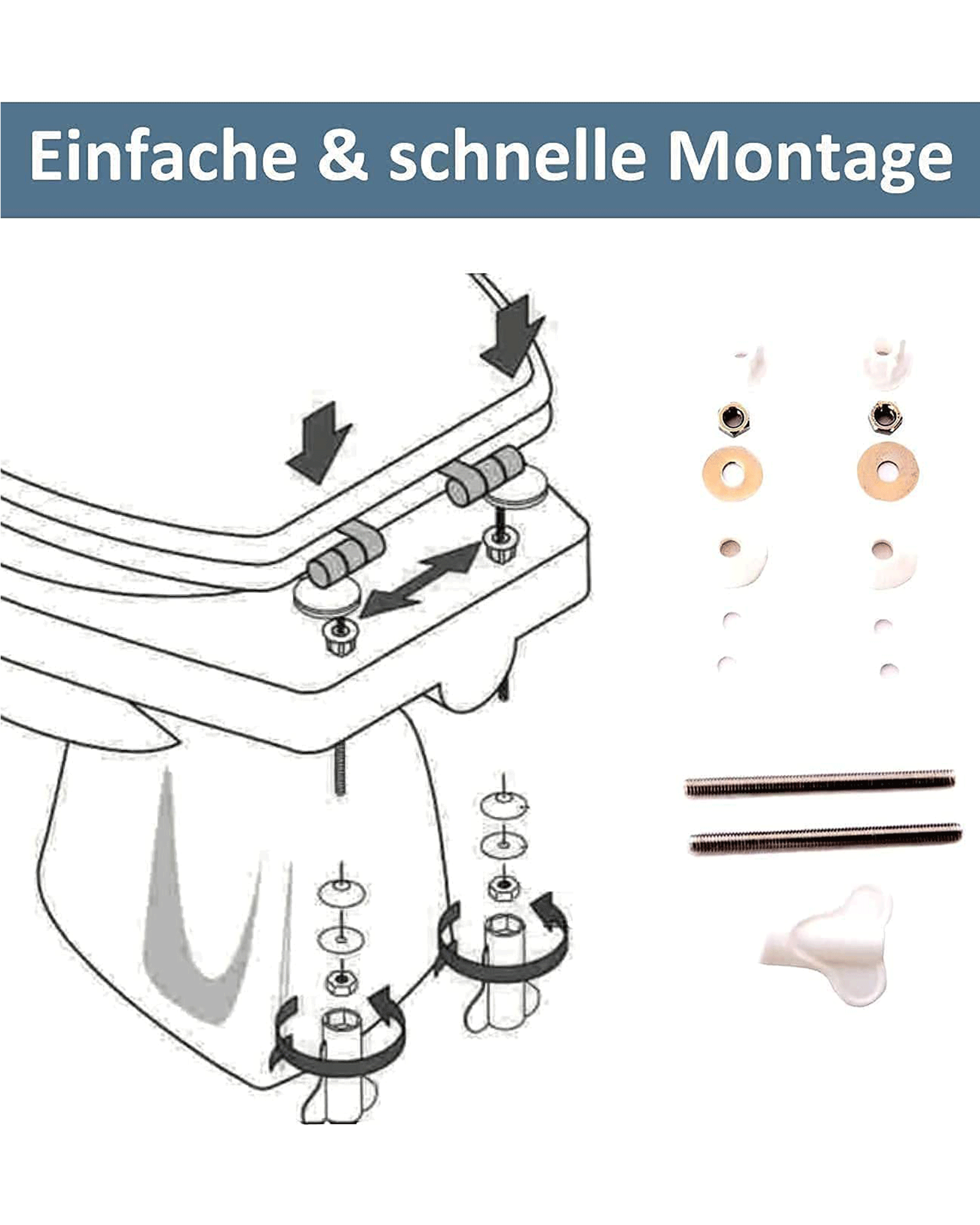 3,Schnelle und einfache Installation: Toilettensitze gibt es in Standardgrößen. Das mitgelieferte Schnellbefestigungsset sorgt für eine schnelle und einfache Installation.