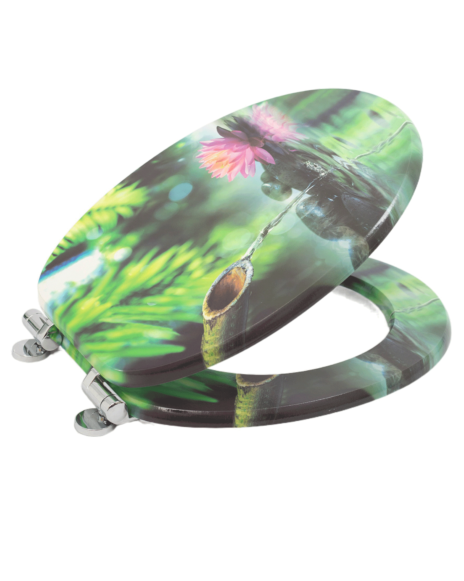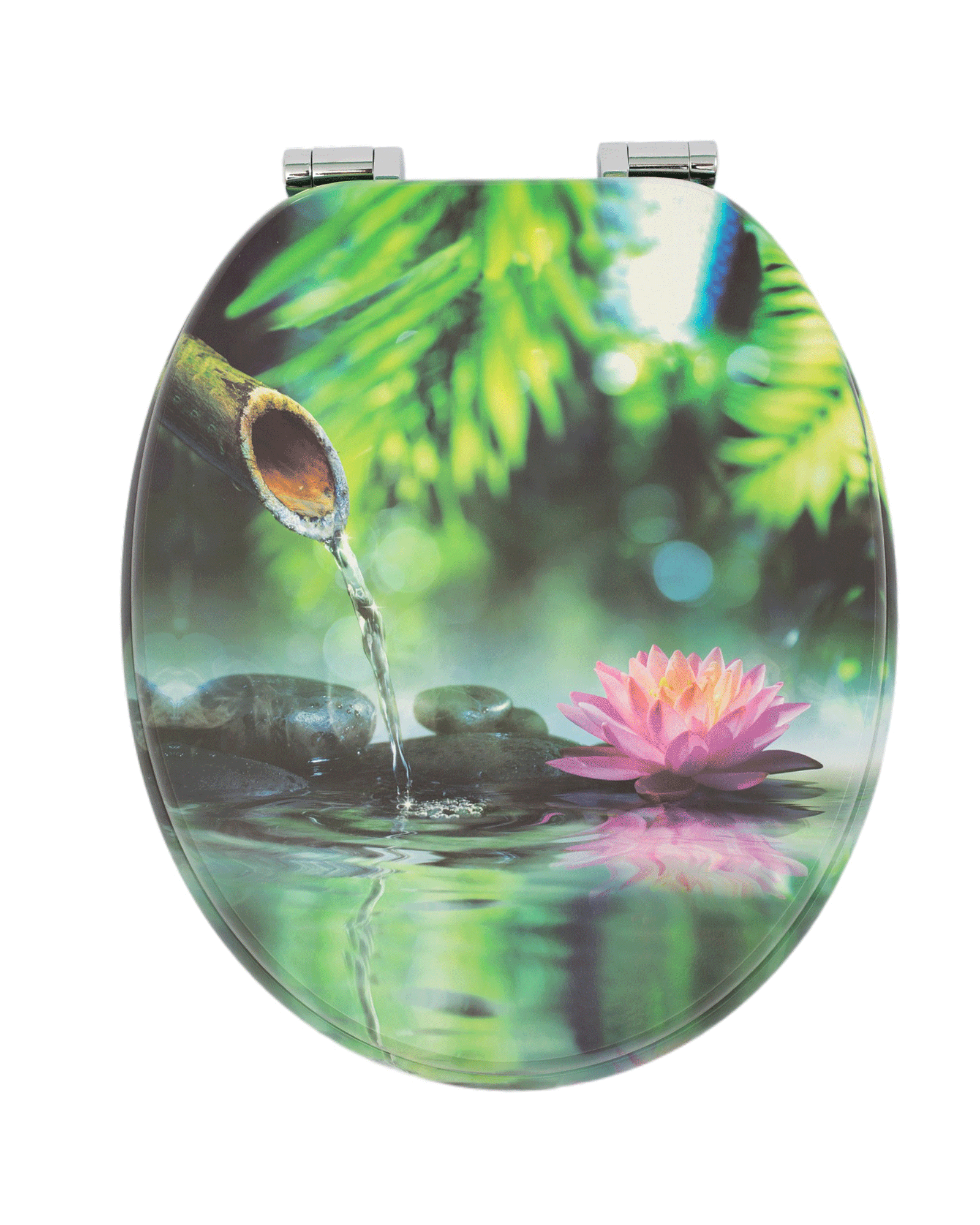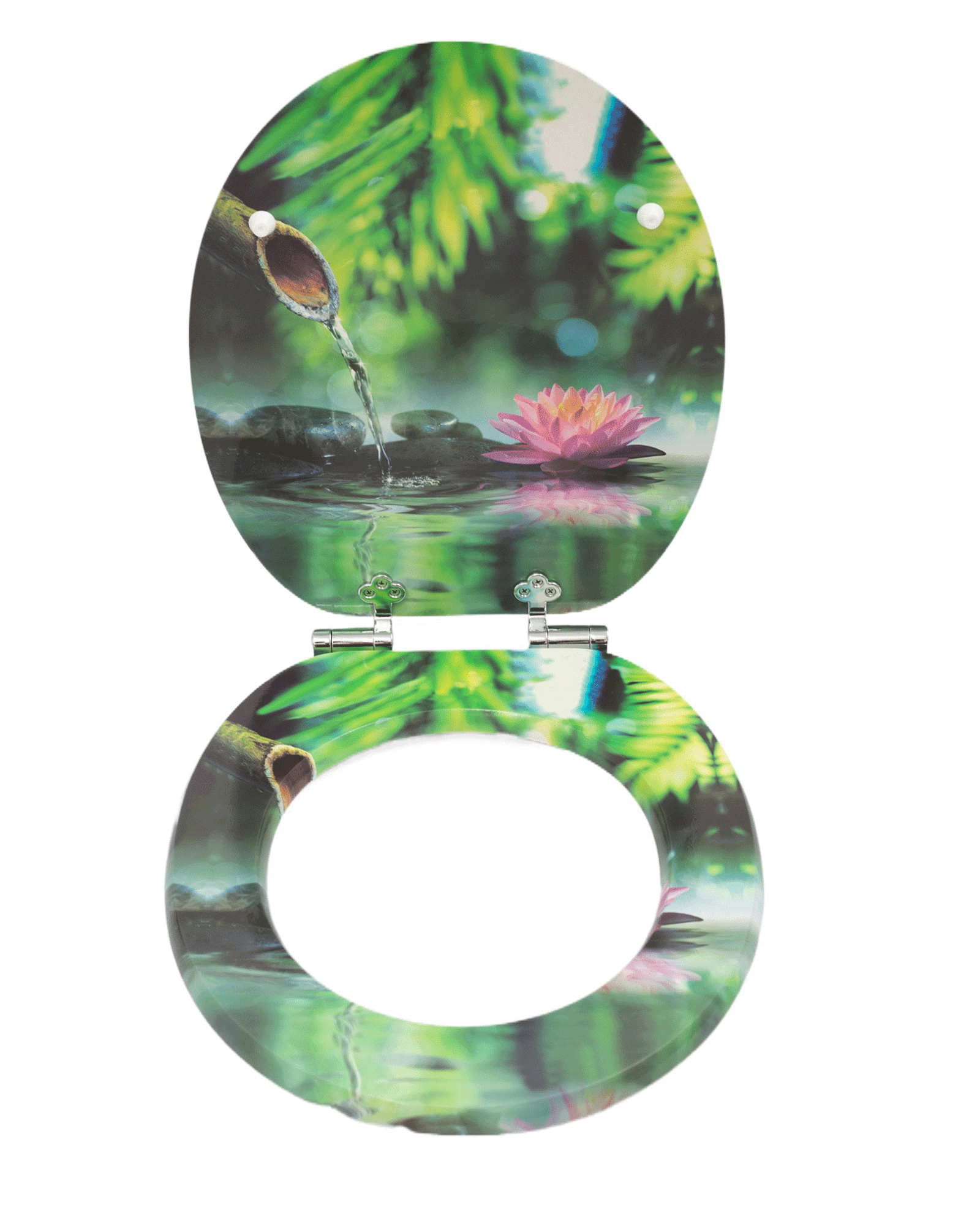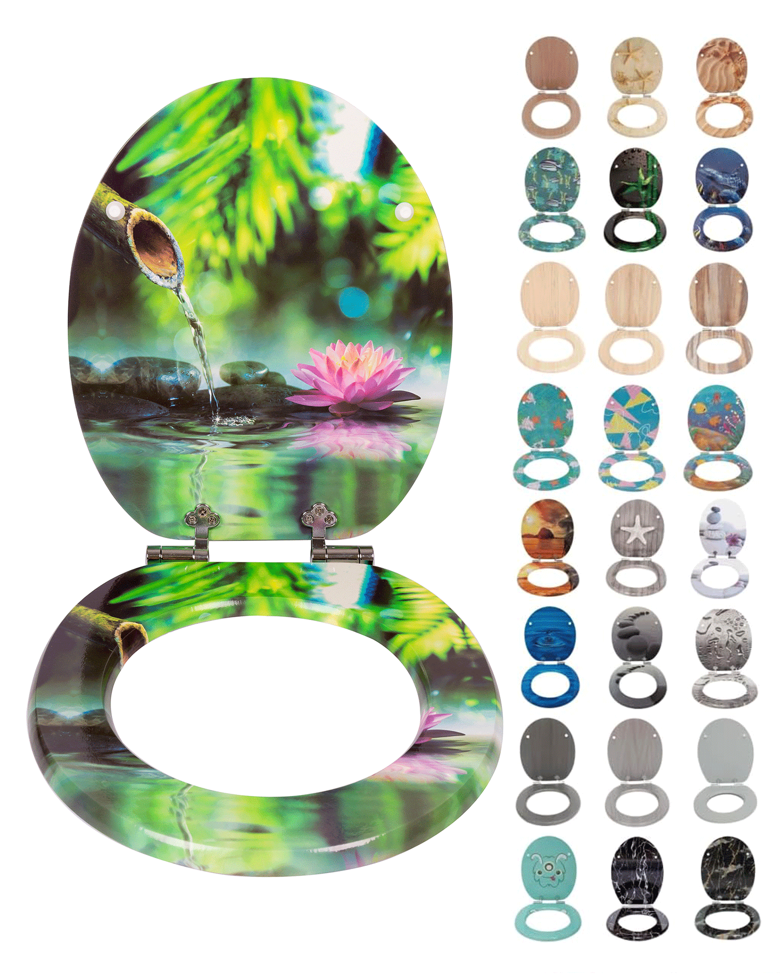 SINOBATH (H155) MDF-Holzkern, WC-Sitz Toilettensitz mit Absenkautomatik, Softclose-Scharnier(Lotusteich)