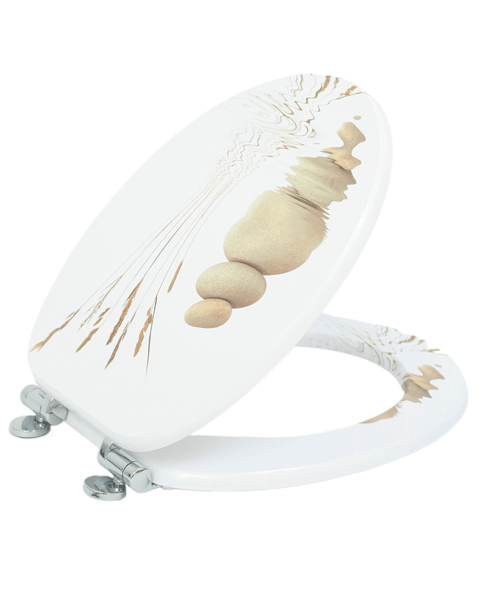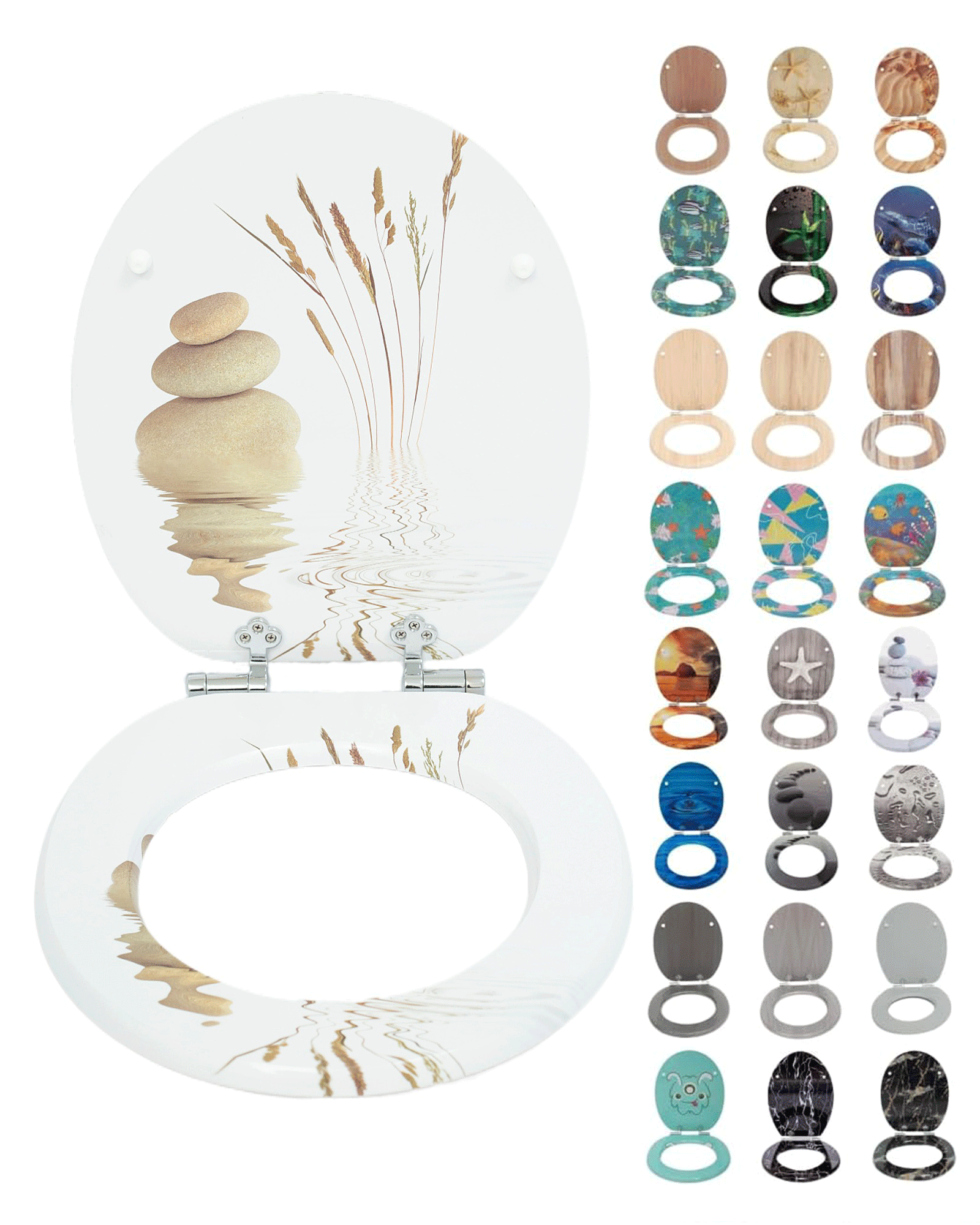 SINOBATH (H235) Toilettensitz mit Absenkautomatik, MDF-Holzkern,WC-Sitz , Softclose-Scharnier(Wasseroberfläche Kopfsteinpflaster)